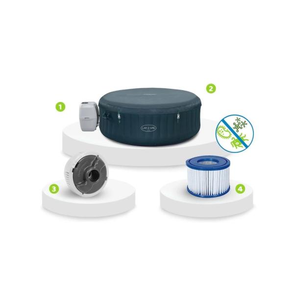 Se 140 tryskami AirJet™ nabízí vířivka jemnou bublinkovou masáž teplým vzduchem, která uvolní vaše svaly a uklidní vaši mysl. Kartušový filtrační systém s průtokem 1 325 l/h se stará o čistou a průzračnou vodu.