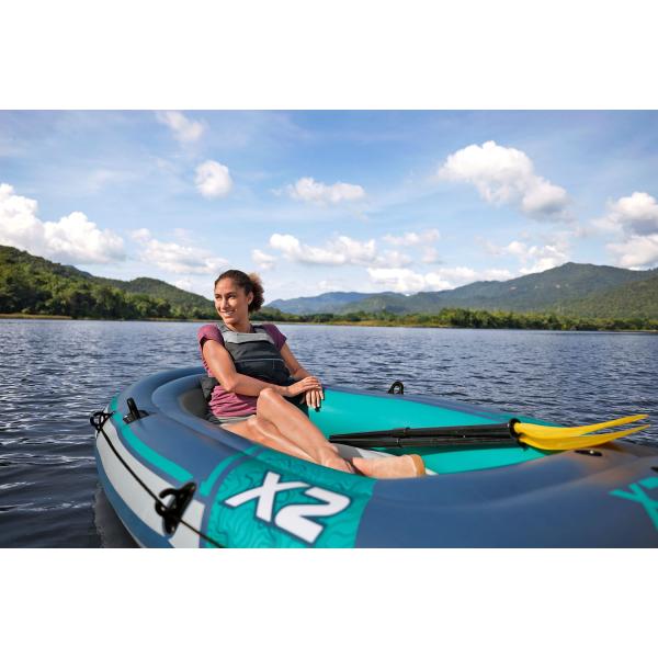 Bestway® Hydro Force® Trek™ X2 je nafukovací člun vyrobený z materiálu Inflata-Shield™ odolného vůči roztržení, který nabízí spolehlivého společníka pro rekreační a volnočasové výlety na jezerech, řekách i pobřežních vodách. Je určen pro 2 dospělé osoby s nosností až 250 kg a splňuje požadavky certifikátu GS (TÜV Rheinland).