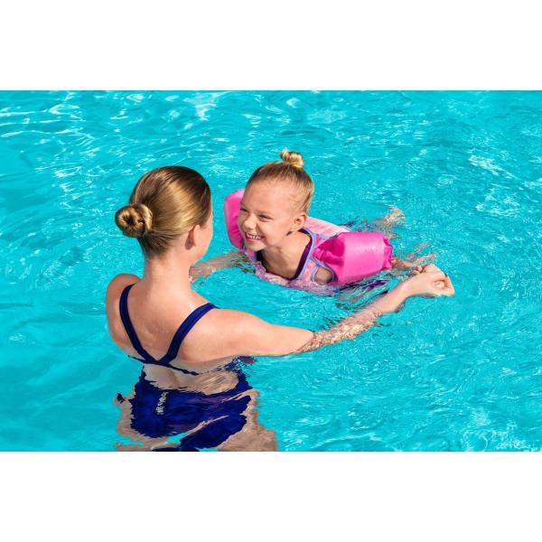 Plavecká pomůcka pomáhá malým dětem ve věku od 3 do 6 let naučit se základům plavání a získat bezpečnost v bazénu. Záchranné vesty v rámci úrovně B jsou vhodné pro malé děti, které pomalu získávají sebedůvěru, ale ještě neumí samostatně plavat. Inovativní design záchranné vesty a vodních křídel zajišťuje, že děti zůstanou bezpečně na vodní hladině. Vesta má také integrované pěnové polstrování a nastavitelné popruhy se zapínáním. Naučit se plavat nikdy nebylo tak zábavné a bezpečné.