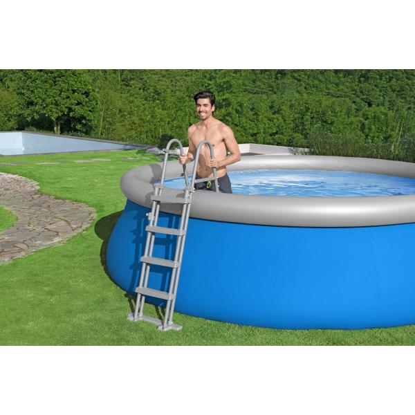 Zesílená konstrukce bazénů Fast Set má super pevné stěny, které jsou vyrobeny ze tří samostatných vrstev materiálu pro velké zatížení a trvanlivost: dvě vnější vrstvy z obzvlášť silného PVC jsou laminovány k vnitřní vrstvě z polyesteru pro extra zesílení. Materiál se nepoškodí benzínem, olejem ani slanou vodou. Je vysoce odolný proti oděru, nárazu a slunečnímu svitu.