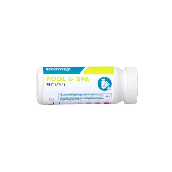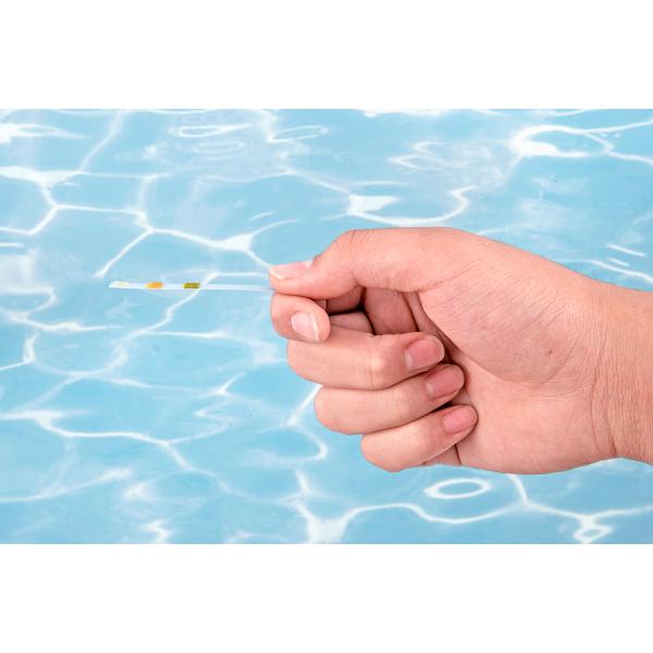 S testovacím proužkem 3 v 1 od Bestway® máte kvalitu vody ve vašem bazénu vždy pod kontrolou! S touto sadou testovacích proužků můžete komplexně a přesně otestovat nejdůležitější parametry křišťálově čisté vody – volný chlór, hodnotu pH a celkovou zásaditost. Díky jednoduché manipulaci s tímto testovacím proužkem si můžete být jisti, že voda ve vašem bazénu je vždy v nejlepším stavu. Měřte volný chlór od 0 do 10 ppm, hodnotu pH od 6,2 do 8,4 a celkovou zásaditost od 0 do 240 ppm. Intuitivní systém barevných indikátorů vám umožňuje rychle a přesně odečíst naměřené hodnoty, abyste mohli podniknout správné kroky pro optimální úpravu vody. Každé balení obsahuje 50 testovacích proužků, takže máte dostatek materiálu po ruce.