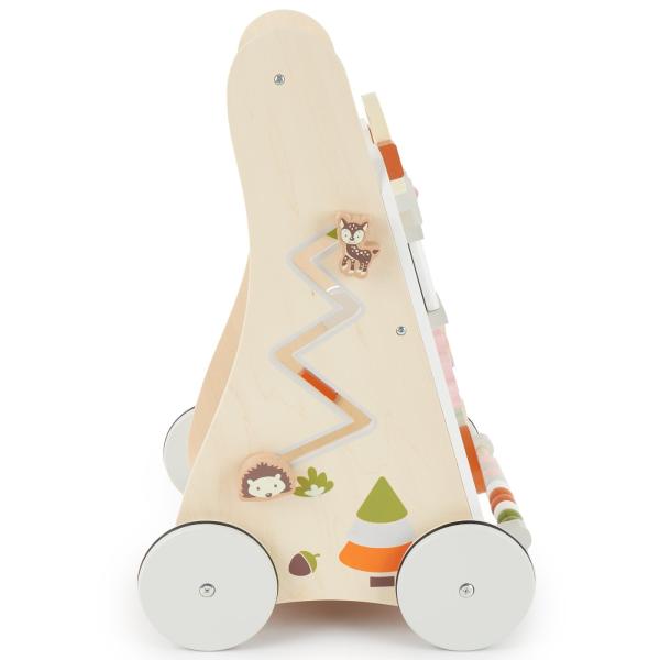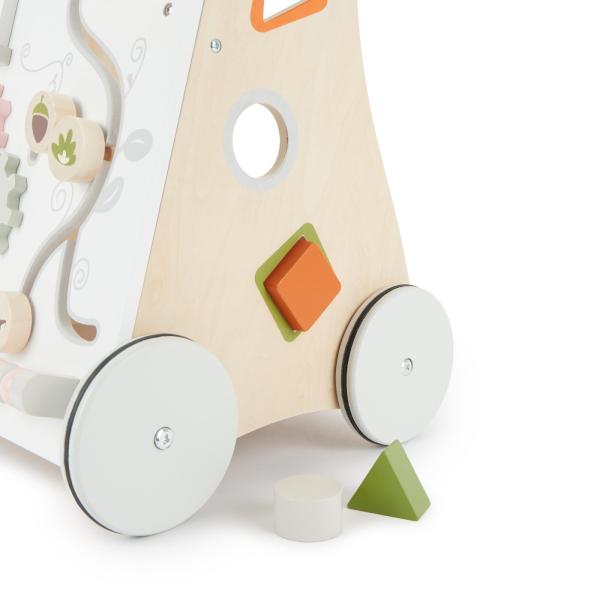 Dřevěné multifunkční chodítko kombinuje pohyb, zábavu a učení v jednom. Je ideální pro děti, které se začínají učit chodit. Chodítko bezpečně provede děti od 12 měsíců na jejich cestě za stabilní chůzí. Kromě prvních pokusů o chůzi má vaše dítě příležitost procvičit si jemné motorické schopnosti a obratnost pomocí různých zábavných aktivit. Vkládání tvarů, ozubená kola, zvukové a hmatové prvky, zrcadlo a mnoho dalšího.