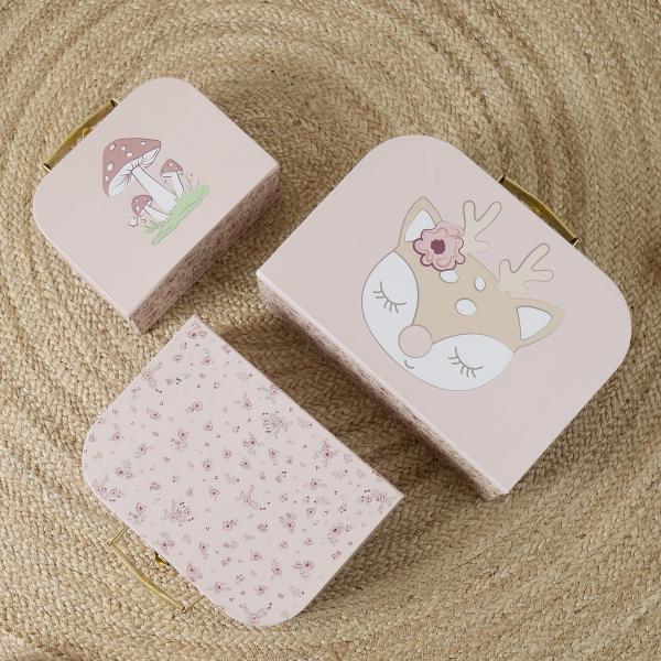 Bieco – Sada tří kartonových kufříků – srnka Ella – dreamy flowers