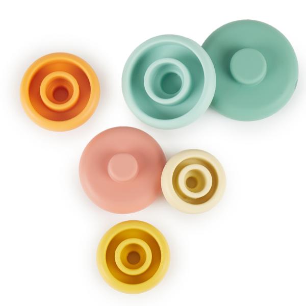 Kreativní hračka pro malé stavitele od 12 měsíců. Podpořte dětskou zvědavost a motorické dovednosti s touto 6dílnou silikonovou stohovací sadou. Věž nabízí mnoho možností stavění, třídění a objevování barev. Vhodná také jako zábavný společník do vany!