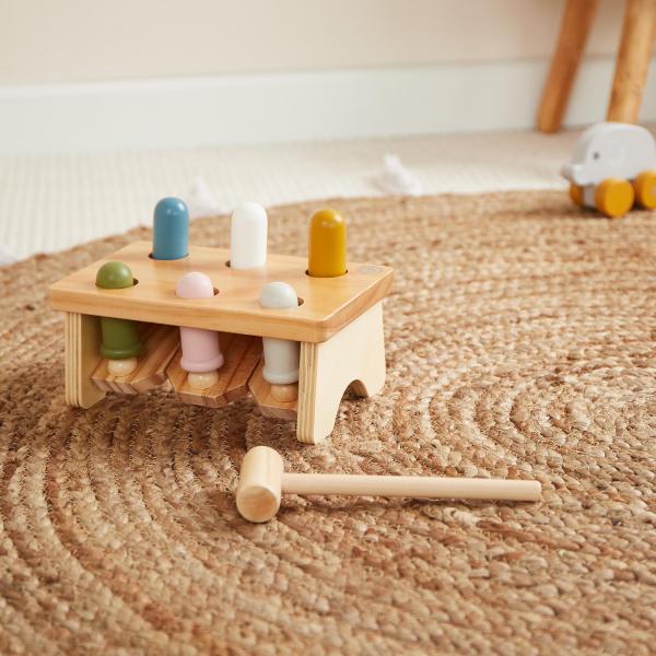 Při zatloukání se děti učí odhadovat svou sílu a rozpoznávat souvislosti. Hračka je vyrobena z vysoce kvalitního dřeva. Její stylový design potěší malé děti i jejich rodiče.