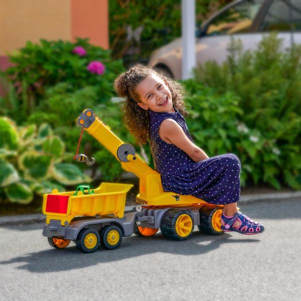 Přívěsný vozík je dokonalým doplňkem k existujícím stavebním vozidlům od společnosti BIG ze série Power Worker Maxi. Nový přívěs se dá jednoduše připojit k vozidlům BIG Power Worker Maxi Truck, Maxi bagru a Maxi jeřábu pomocí přiloženého tažného zařízení. Díky kvalitním pneumatikám z měkčího plastu, který nezanechává stopy, je možné přívěs bez problémů používat i v interiéru.