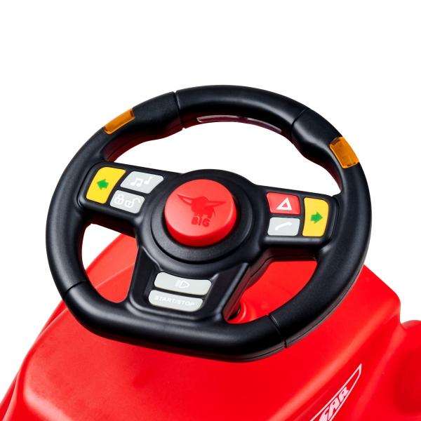 Multifunkční volant se světelnými a zvukovými efekty, voděodolný. Kompatibilní se všemi Bobby Car odrážedly od roku 2010 (Classic, Neo, Next). 8 různých zvuků, funkce: ukazatel odbočení vlevo/vpravo (LED světlo) + příslušný zvuk, zvuk zamykání auta,…