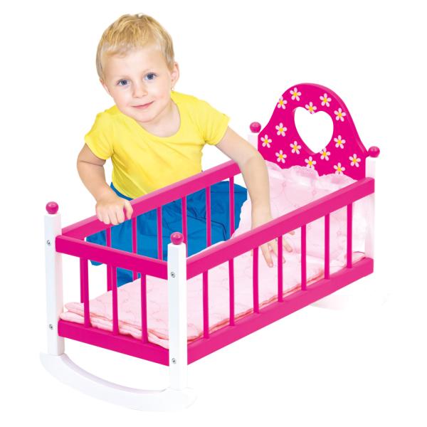 KráKrásná dřevěná kolébka s peřinkami pro panenky potěší každou malou maminku. Je vyrobena z vysoce kvalitního dřeva a natřena naprosto nezávadnými ekologickými barvami. Rozměr 57x29x26 cm.