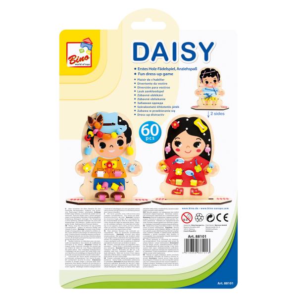 Malé děti stráví nekonečné hodiny krásným oblékáním holčičky nebo chlapečka (oboustranně potištěná deska na navlékání). Tato roztomilá hra s navlékáním je tak bohatá na doplňky, že se děti mohou pořádně odvázat. Při hraní této jedinečné a zajímavé hry s nitěmi si děti zlepšují jemnou motoriku, koordinaci rukou a očí, kognitivní myšlení, vizuální vnímání, řešení problémů, trpělivost a soustředění. Je to zábavný způsob, jak se děti mohou učit při hře. Je to klasická hračka na navlékání, kterou si malé děti mohou užívat kdekoli a kdykoli. rozměry výrobku: 23x22x4,5 cm, počet dílů: 60 ks, materiál: dřevo. Věk: od 3 let