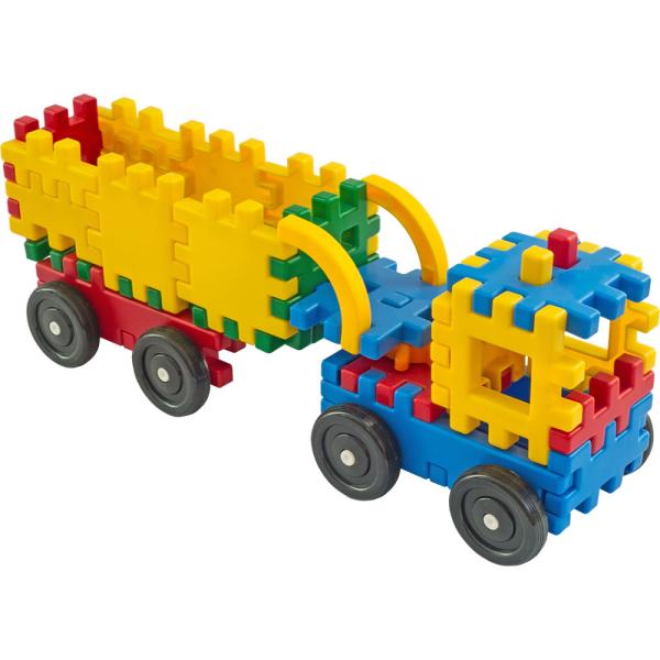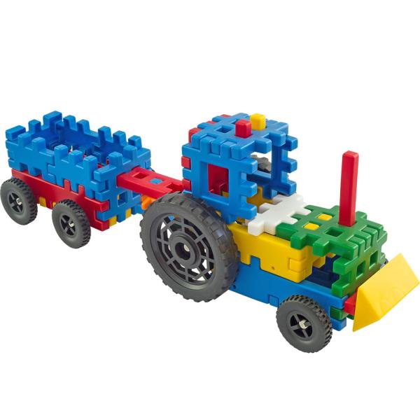 Sada plochých plastových dílků nabízí dětem sestavování modelů ve 2D i 3D formátu. Pomocí profilovaných okrajů do sebe dílky pěkně zapadají. Stavebnice obsahuje také kolečka, děti mohou sestavit i traktorik. Parametry: rozvíjí fantazii a jemnou motoriku dítěte vyrobeno z kvalitního plastu bez obsahu ftalátů stavebnice Blok jsou navzájem kombinovatelné Materiál: plast Počet dílů: 172 Rozměr balení: 35 x 35 x 8 cm Vhodné pro děti od 4 let