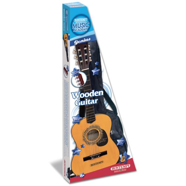 -52%Každé dítě může skvěle předvést své hudební schopnosti na této kytaře od Bontempi! Klasická dřevěná kytara se 6 strunami laditelná Realistický zvuk Trsátko Ramenní popruh D. 920 mm