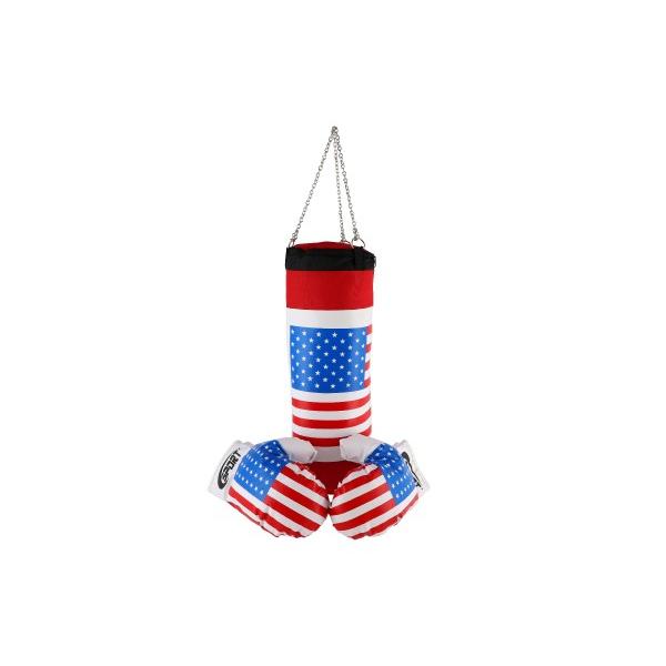 Boxovací pytel přinese spoustu akční zábavy všem malým sportovcům. Pytel lze zavěsit v podstatě kamkoli a malý boxer na něm může trénovat údery i svůj postřeh. Součástí balení jsou také rukavice, vše je vyvedeno v originálním designu s americkou vlajkou. Obsah balení: Boxovací pytel Dvě boxerské rukavice Doporučený věk: 3+ Rozměry: 45 × 15 cm