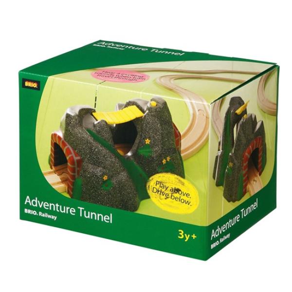 Popis Brio Kamenný tunel se zvukovým systémem Dobrodružný tunel se zajímavým vzhledem skály Dva vrcholy spojuje lávka Obsahuje kromě schovaných kolejí, také automatický magnetický zvukový systém Po vjezdu soupravy dovnitř tunelu začne vydávat 4 různé zvukové efekty (houkání před tunelem av tunelu, práci v tunelu a funěním lokomotivy). Věk: 3+