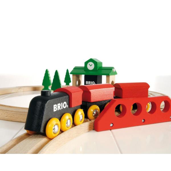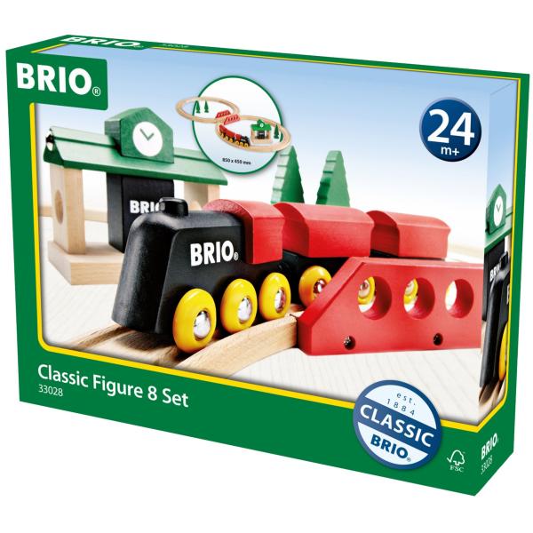 Brio Vláčkodráha osmička Classic Vláčkodráha ve tvaru osmičky obsahuje lokomotivu s vagonky, stanici a stromky. Díly jsou vyrobeny z kvalitního dřeva a mají plastové doplňky. Tato souprava je kompatibilní s ostatními dřevěnými vláčkodráhami Brio. Kvalitní dřevěné provedení značky Brio. Rozměry: délka po složení 850 × 450 mm. Sada obsahuje 22 dílků. Vláčky Brio jsou kvalitní a designově zpracované dřevěné hračky, které zaujmou nejen vaše děti. Věk: 2+