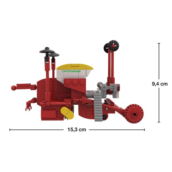 Objevte zábavu a kreativitu s 3D stavebnicí BRIXIES Pöttinger Vitasom M – mechanický sejací stroj, 224 k! Tato detailně zpracovaná stavebnice obsahuje celkem 224 dílků, ze kterých si nejen děti, ale i dospělí mohou postavit model mechanického sejacího stroje Pöttinger Vitas M. Po sestavení dosahuje model rozměrů: cca 15,3 x 9,4 x 13,2 cm (d x v x š). Tato stavebnice je inspirována skutečným strojem, což zajišťuje věrné zachycení jeho charakteristických prvků a jedinečného designu. Níže najdete další zajímavé informace a technické detaily.