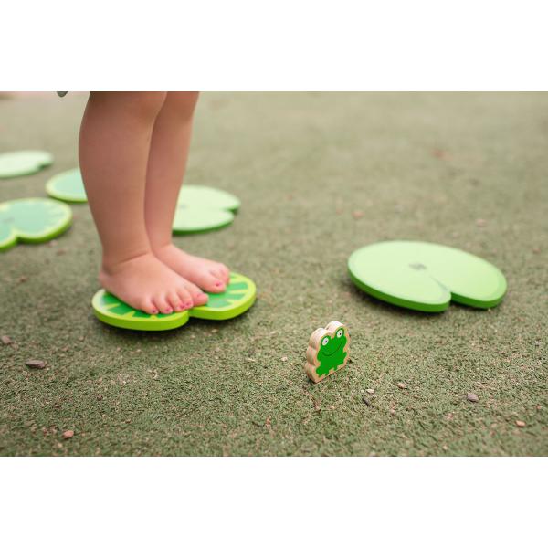 Hra pro 1-4 hráče od 3 let. Projděte se po vratkých leknách a cestou sbírejte žáby. Dokážete je všechny posbírat, aniž byste spadli? Pokud ano, čeká na vás krásný žabí princ. Cílem hry je projít přes všechna lekná až na konec vratké cesty a cestou posbírat všechny žáby. Posláním této hry je umožnit dětem bavit se bez chytrých telefonů a tabletů. Hra podporuje: • hrubé motorické dovednosti • koordinaci