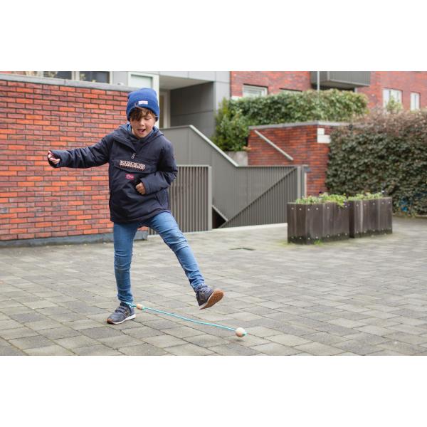 Užijte si zábavu ze sportu s touto retro hračkou pro děti od 6 let. Prostrčte smyčkou švihadla jednu nohu, rozhoupněte ji i s míčem a skákejte přes míč a lano. Jak dlouho dokážete tancovat a skákat, aniž byste se dotkli míče? Skvělá hračka, která pomáhá udržovat vaše děti aktivní a zdravé.Hra podporuje:• hrubé motorické dovednosti• vytrvalost• výdrž