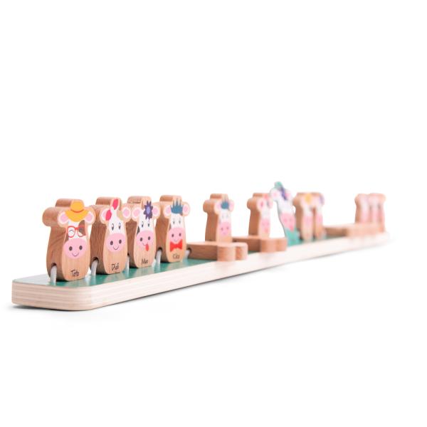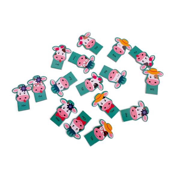 Obsah balení: 2 podstavce s kravičkami (56 x 4 x 4,5 cm) | 16 karet s obrázky kraviček.