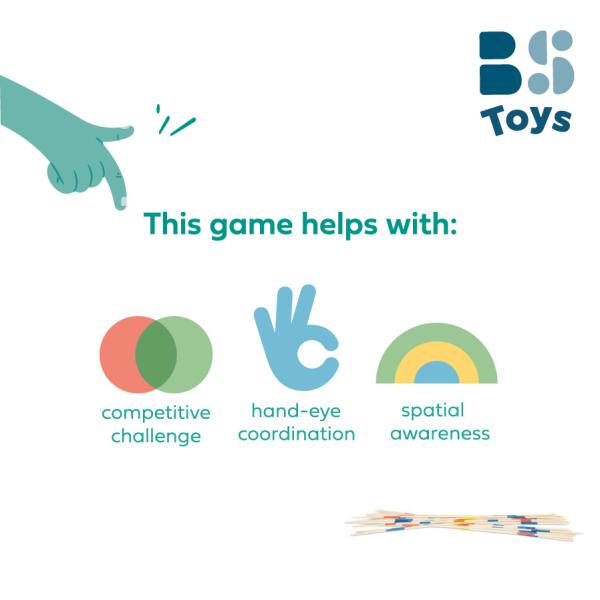 větší formát ideální na zahradu či piknikrozvoj koncentrace, trpělivosti a jemné motorikypřenosná a odolná hra – bambusové tyčky vydrží i outdoorové hraní.