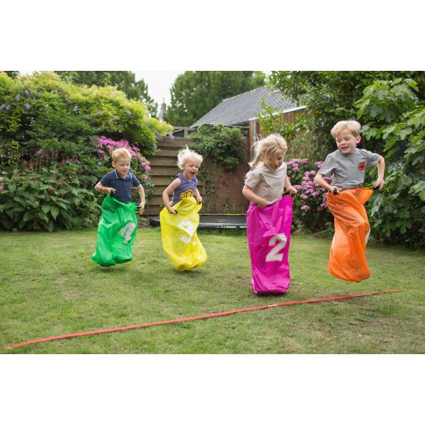 Party sada pro 2-4 neposedníky od 4 let. Tato sada dětem zaručí hodiny zábavy. Zahrajte si závody ve vaku, zahrajte si hru s vejci a lžičkami nebo se pokuste převrhnout všechny šálky. Ideální sada na (narozeninovou) párty a dostatek her na dětský den s množstvím radovánek! Posláním této hry je umožnit dětem bavit se bez chytrých telefonů a tabletů. Obsah balení: 4 skákací pytle 70 x 50 cm, 4 lžíce, 4 vejce, 10 šálků, 4 vrhací pytle, 4 kolíčky, startovní a cílová čára. Hra podporuje: • hrubé motorické dovednosti • koordinaci oko-ruka • hraní venku