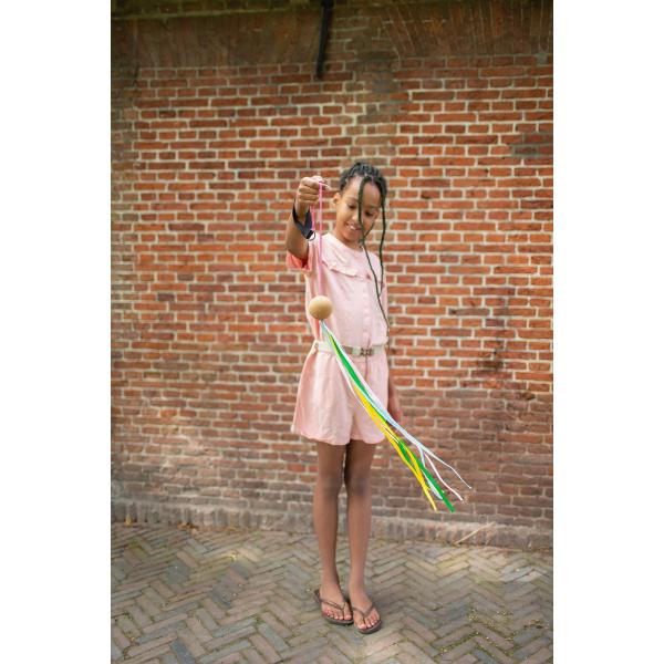 Poi sling je hračka, která slouží k rozvoji koordinace oko-ruka a kreativity u dětí. Hračka vhodná pro děti od 4 let kombinuje jednoduché točení s hravými barevnými stuhami. Díky korkovému závaží a dlouhým stužkám se snadno ovládá a je ideální pro začátečníky.