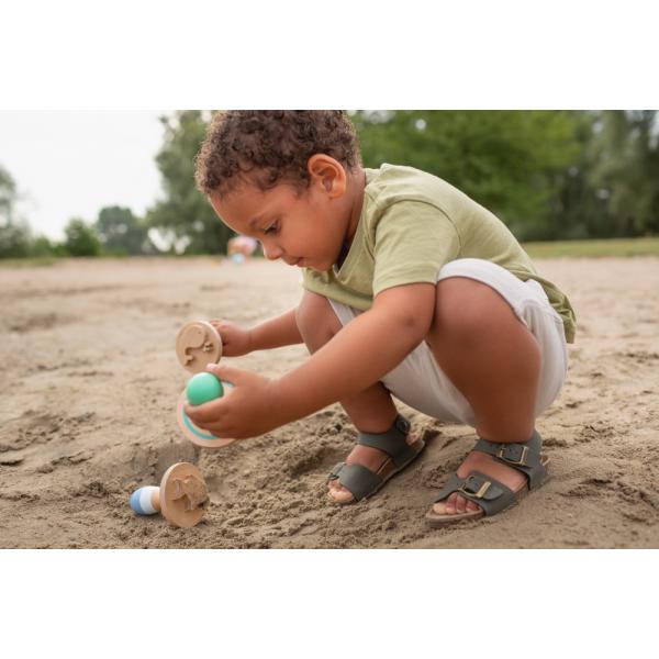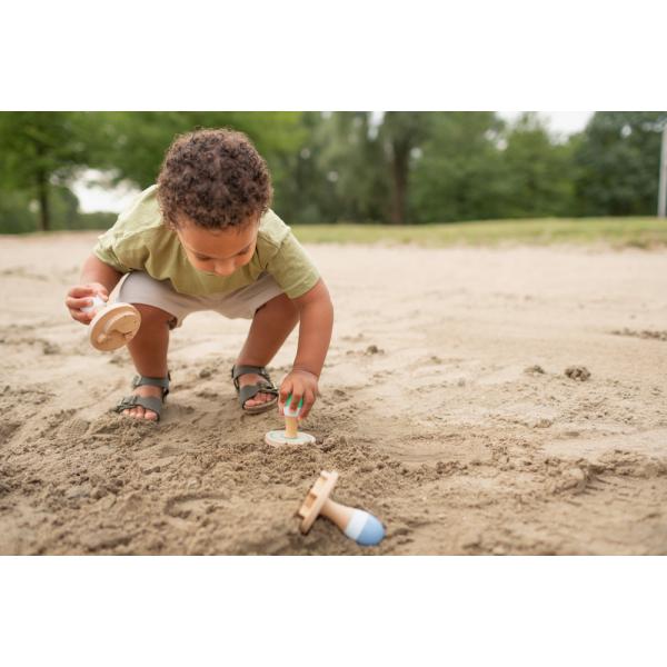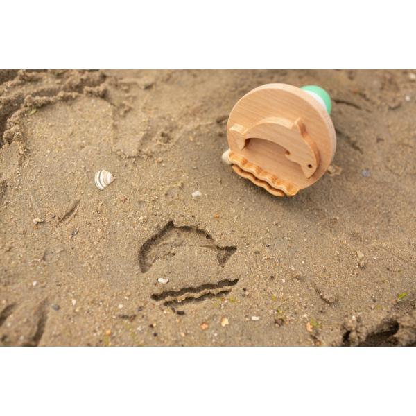 Vytvořte úžasné vzory v písku pomocí tří dřevěných razítek. Vtlačte razítko do písku a odhalte delfína, rybu a velrybu. Je to skvělý způsob, jak rozvíjet kreativitu na pískovišti nebo na pláži.