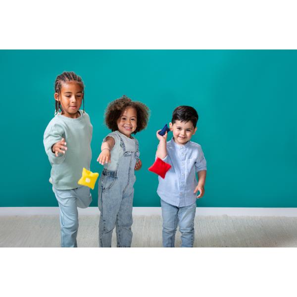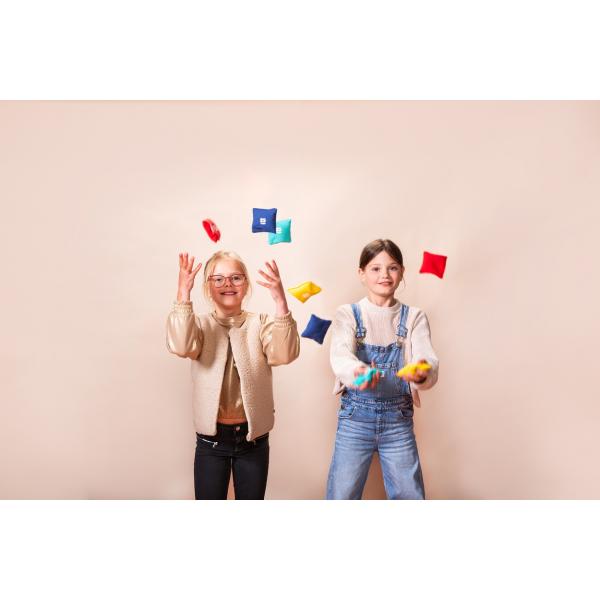 Sada 8 barevných textilních pytlíčků s pískovou výplní. Užijte si množství aktivit a výzev. K dispozici máte návod na 6 různých variant her, které je možné s pytlíčky hrát. Určeno pro 1-8 hráčů od 3 let. Jednotlivé hry je možné přizpůsobit věku, úpravou vzdálenosti nebo obtížnosti.