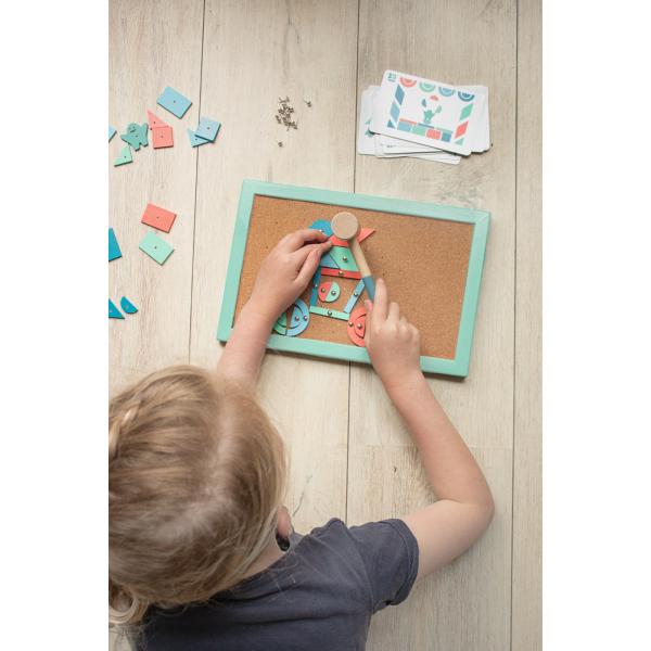 Děti v této hře vytvářejí vzory z karet přibíjením dílků různých tvarů a barev pomocí dřevěného kladívka na korkovou nástěnku. Děti mohou zapojit i svou fantazii a vytvářet si své vlastní vzory se všemi dřevěnými dílky.
