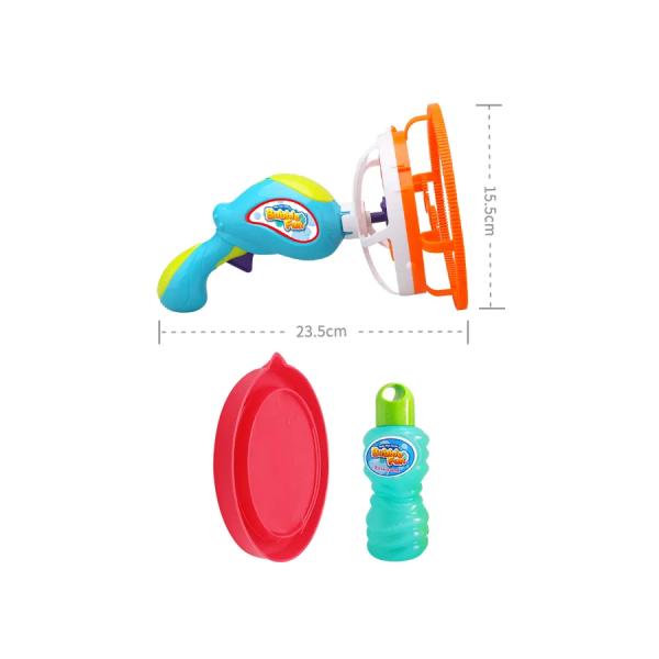 Jednoduché použití: Provoz stroje je intuitivní a jednoduchý, co umožňuje dětem, aby si užívali zábavu bez zbytečných komplikací. Stačí vložit baterie, naplnit misku roztokem a spustit stroj.