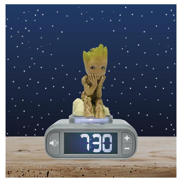 S intuitivními ovládacími tlačítky je možné jednoduše nastavit čas na podsvíceném LCD displeji, který nenarušuje spánek. Vyberte si z několika tematických tónů budíku a užijte si zábavné zvukové efekty. Hlasitost na zařízení je nastavitelná. Zářící 3D noční světlo se rozsvítí při stisknutí horní části zařízení nebo když zazvoní budík! Světlo se automaticky zhasne po pár minutách nebo když horní část stisknete znovu. A pro ty, kteří se chtějí dál válet v posteli, je tu funkce odložení.