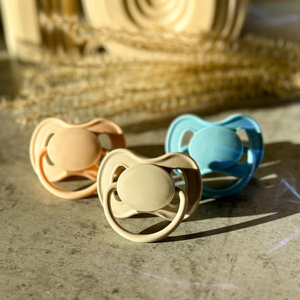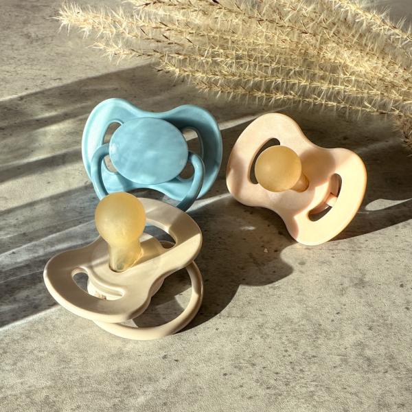 Gumový dudlík se špičkou kulatého tvaru v přírodních barvách z kolekce NUDE. Je vyroben z přírodního kaučuku, který je charakteristicky nažloutlý a matný.