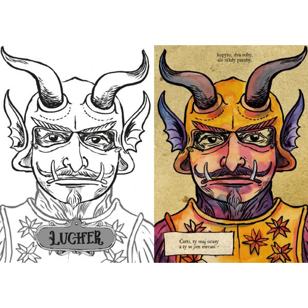 V této originální knize najdete součást speciálního zadržovacího vybavení: strašidelné čertovské masky na vystřihování. Barevné, které si stačí jen nasadit a všem hříšníkům okamžitě zavařit, a černobílé na samostatné vybarvení. A k práci nebo při strašení si můžete zazpívat (zarevat) společně s čerty jejich pekelnou píseň. Příjemnou zábavu a hříchu zmar!