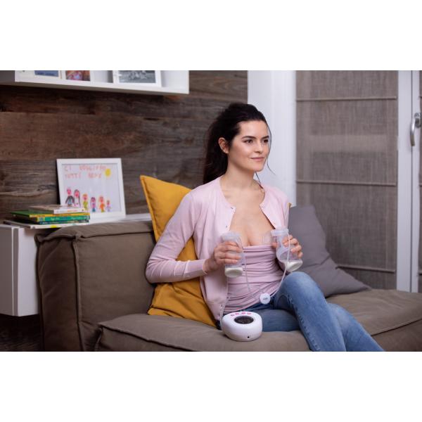 Dvojitá elektronická odsávačka Chicco je speciálně navržena tak, aby odsávala mateřské mléko tak jemně, jak je to jen možné, a zároveň maximálně efektivní, z obou prsů najednou. Lze ji používat se síťovým adaptérem, ale také jako přenosnou odsávačku s alkalickými bateriemi typu AA. Odsávačka mateřského mléka je kompatibilní s řadou lahví Chicco Natural Feeling. Chicco Double Pink přináší 2 fáze odsávání z prsu: 1. stimulační fáze ke stimulaci laktace 2. extrakční fáze již na samotné efektivní odsávání mléka. Mezi fázemi lze jednoduše přepínat dle potřeby. Odsávačka zobrazuje uplynulý čas i nastavenou úroveň. Umožňuje rytmus odsávání přizpůsobit až v 10 úrovních intenzity odsávání. Je přitom tichá, takže ji lze použít kdykoli a kdekoli. Její měkká, hebká silikonová vložka jemně přilne k vašim prsům a masíruje prs, čímž napomáhá extrakci mléčka. Vlastnosti: Design a praktičnost Single Pink odsávačky ve dvojitém Double provedení pro efektivitu a vyváženost odsávání z obou prsou najednou. Ergonomický design odsávačky s nakloněnými prsními skleničkami pro pohodlnou a klidnou polohu během odsávání. Měkké masážní silikonové membrány na každé skleničce pro dokonalou přilnavost k poprsí. 2 režimy odsávání pro efektivní a přirozené odsávání mléka napodobující fáze sání mléčka miminkem rychlý rytmus odsávání stimuluje průtok mléka, po 2 minutách se přepne do pomalejšího extrakčního módu. 10 úrovní odsávání vyhoví fyziologickým potřebám každé maminky. Ovládání odsávačky je velmi jednoduché a intuitivní i díky praktickému, modernímu tmavému displeji. Odsávačka je kompatibilní s kojeneckými lahvemi Chicco Natural Feeling. Násadka s nakloněným dudlíkem Natural Feeling lahví je součástí balení, takže po odsátí lze na láhev nasadit dudlík a děťátko nakrmit. S pomocí přiloženého uzávěru lze také mléko snadno uchovávat. Praktická základna zabraňuje pádu a rozlití. Nadčasový design s intuitivními růžovými prvky a tmavým displejem, který je výborně čitelný, ale zbytečným světlem neruší např. v noci. Balení obsahuje: duo odsávačku mléka Chicco Double Pink síťový adaptér láhev Natural Feeling s dudlíkem vložky do podprsenky Neobsahuje BPA.