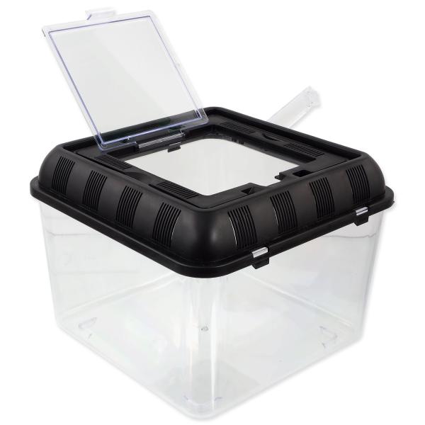 Ideální pro přepravu terarijních zvířat nebo krmného hmyzu. Stohovatelné – stálý přístup ke krmným dvířkům z boční strany. Větrací otvory z boční a horní strany. Průhledný čirý plast pro snadné pozorování. Pevná konstrukce zabraňuje úniku zvířat. Velikost: 26 x 26 x 20 cm