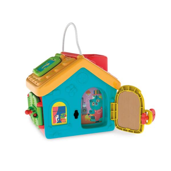 Interaktivní sada – domeček s mnoha různými funkcemi a figurkou na hraní. H račka inspirovaná metodou Montessori slouží jako skutečná cvičební sestava, která zlepšuje jemnou motoriku a zároveň se učí používat předměty každodenní potřeby. Objevováním interiéru domečku si dítě procvičuje schopnost otevírat všechny dveře a různé zámky. Rozměry: 21 x 21 x 3 cm Věk 18m+