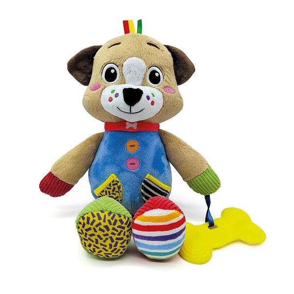 Ultra měkký plyšový pes vhodný pro malé děti na hraní v atmosféře plné něhy! Tento roztomilý psík je dodáván s měkkou přikrývkou navrženou tak, aby absorbovala matčinou vůni a uklidnila dítě během fáze odpoutání. Darovací krabička obsahující plyšovou hračku je navržena a ilustrována živými barvami a je možné ji také použít jako psí boudu. Plyšová hračka je vybavena žvýkacím doplňkem určeným pro fázi prořezávání zoubků malých dětí. Možno prát v pračce. Rozměry balení: 30×10,5x22cm. Věk: 0+