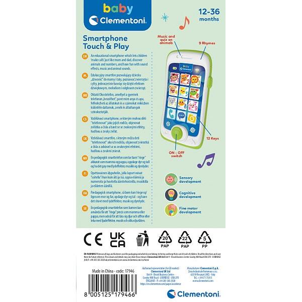 Smartphone touch and play je elektronická imitácia s dotykovou membránou a 12 dotykových tlačidiel so zvieracími zvukmi a hudbou. Zábavný vzdelávací chytrý telefon, ze kterého budete “volat“ jako maminka a tatínek. S množstvím melodií a zvukových efektů. S hmatovou technologií se znalosti získávají hmatem. Doprovází dítě světem zvířat a jejich zvuků. S 3 barevnými LED světly.