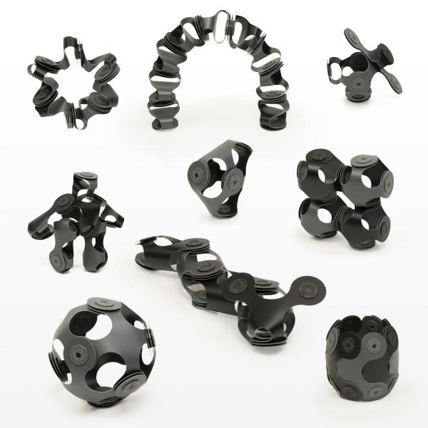 CLIXO Designer Black & Grey – 9 kusů je flexibilní, velmi lehká, magnetická stavebnice v černo-šedé kombinaci, inspirovaná filozofií trvale udržitelného rozvoje a vyrobená z recyklovaného syntetického papíru. Zároveň je to skvělá Montessori hračka. Tato stavebnice je založená na principu spojování různých tvarů a dílků pomocí magnetů k sobě. Sada Designer umožňuje postavit až 100 různých staveb a stavět takové kombinace, jako je například most, had, housenka, větrník, náramek, miska nebo kotoulející se kulička. Uvedené výtvory však mohou být zajímavé nejen pro děti, ale díky moderním barvám mohou být také ozdobou na pracovním stole. Sada je díky zvoleným barvám vhodná i jako antistresová nebo relaxační sada i pro dospělé. Inspirace pro různé stavby najdete uvnitř papírového balení. V tomto zázračném balení kapesní velikosti se skrývá svět zábavných objevů! Tato sada se skvěle hodí i jako doplněk k jakékoli jiné sadě. Prodává se ve dvou barevných variantách.