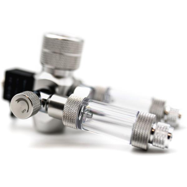 1. Dokonalé jemné ovládáníVentil pro nastavení průtoku plynu je ve srovnání s mnoha jinými výrobci velmi přesný, takže můžete provádět i malé změny v dávkování, což je velmi výhodné zejména pro menší akvária.2. Zpětný ventil zabudovaný přímo v sestavěNajdete ho v bublinkovém počítadle. Tím je celá sestava chráněna před vodou.3. Elektromagnetický ventil bez přehřívání a bez sacíhoNoční vypínání zajišťuje tzv. elektromagnetický ventil. V této sestavě je na 12 V. Ve srovnání s konkurenčními výrobky se nepřehřívá a při namáhání nepípá.