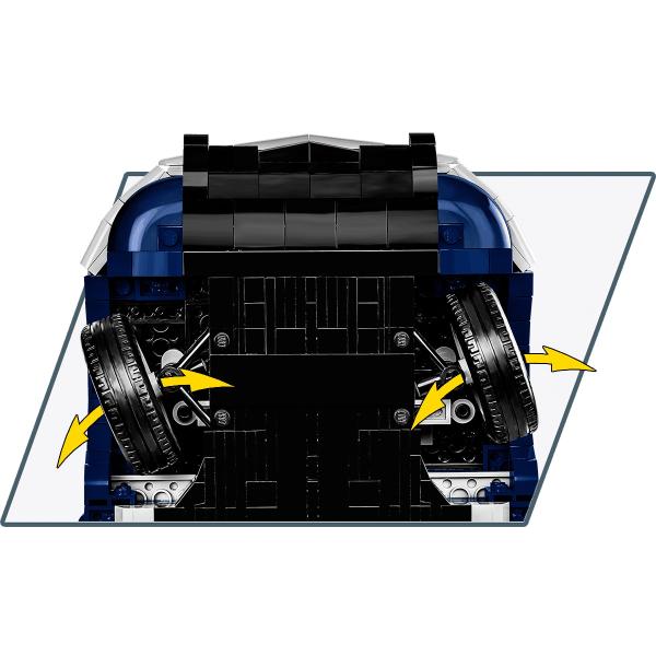 Stavebnice legendárního francouzského automobilu Citroën v nejluxusnější verzi DS 21 Pallas v měřítku 1:12. Auto je lakováno v dobové tmavě modré barvě s bílou střechou stejně jako jeho skutečná předloha. Sestavený model má otevírací dveře, detailně propracovaný luxusní interiér, otevírací kapotu a otočná kola s volantem. Stavebnice je vyrobena na základě oficiální licence společnosti Automobiles Citroën. Měřítko 1:12 Počet kostek 2265 Rozměry po sestavení 40 x 15 x 12,5 Kostky lze kombinovat s jinou známou značkou Ano Materiál Plast
