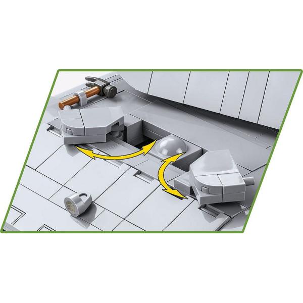 PANZERKAMPFWAGEN E-100 byl vyvinut ve velkém měřítku 1:28 s použitím 1511 prvků a měří 37 cm na délku. Velké rozměry modelu umožnily navrhnout interiér věže a vozidla. Model nabízí přístup k servisnímu poklopu, pod kterým je odnímatelný motor. Mezi další funkce patří otočná věž, pohyblivé dělo, přístup k průlezem pro posádku a pracovní koleje. Součástí sady je i velmi zajímavá figurka tankisty s potiskem na zádech. Takový obrovský model poskytne mnoho hodin vzrušujícího stavění a stane se dominantním exponátem ve vaší sbírce! Budujte historii, kousek po kousku, s COBI! 1511 vysoce kvalitních prvků Vyrobeno v EU společností s více než 20 letou tradicí Kostky splňují bezpečnostní normy výrobků pro děti Plně kompatibilní s jinými značkami stavebních bloků Bloky s potiskem se nepoškrábou ani nerozmazávají a nevyblednou během hry ani vlivem teploty Jasné a intuitivní pokyny na základě ilustrací a podrobných pokynů 1 figurka tankisty Štítek s názvem nádrže Rozměry modelu (D x V): 370 mm (14,56″) x 165 mm (6,49″) x 125 mm (4,92″) Pro děti od 6 let