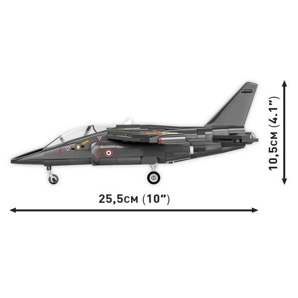 Dassault Alpha Jet je proudový letoun určený pro pokročilý výcvik a lehké útočné úkoly. Vznikla německo-francouzskou spoluprací a do služby vstoupila v 70. letech minulého století. Vyráběly se jednomístné a dvoumístné verze (pilot a instruktor). Alpha Jet sloužil mimo jiné ve Francii, Německu, Belgii, Portugalsku a Egyptě. Ve Francii se používá dodnes. Blokový model byl vyvinut v licenci francouzského výrobce vojenských letadel Dassault Aviation a doplňuje kolekci letadel ozbrojených sil vydaných v měřítku 1:48. Součástí modelu jsou kvalitní potisky a polepy (malba křídel a křídel). Sada obsahuje také zjednodušená těla pilotů, která lze umístit do otevíracího kokpitu. Podvozek letadla, v závislosti na vašich preferencích, lze snadno odpojit a vystavit jej na stojanu. Sada obsahuje stojan na vystavení bloku a štítek s názvem modelu. Série Armed Forces je určena pro nadšence letectva, vojenské techniky a fanoušky nejkvalitnějšího blokového modelářství! 364 vysoce kvalitních prvků Vyrobeno v EU společností s více než 20 letou tradicí Kostky splňují bezpečnostní normy výrobků pro děti Plně kompatibilní s jinými značkami stavebních bloků Bloky s potiskem se nepoškrábou ani nerozmazávají a nevyblednou během hry ani vlivem teploty Jasné a intuitivní pokyny na základě ilustrací a podrobných pokynů Součástí jsou nálepky Stojan na displej Typový štítek modelu Rozměry modelu (D x Š x V): 25,5 cm (10″) x 19 cm (7,5″) x 10,5 cm (4,1″) Pro děti od 8 let