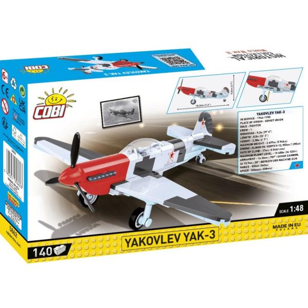 Postavte si model sovětského stíhacího letadla Jak-3, který se vyrábí od roku 1944. Jak-3 si získal pověst solidního a snadno udržovatelného stroje. Líbil se pilotům i pozemnímu personálu. Zajímavostí je, že šlo o jednu z nejmenších a nejlehčích stíhaček 2. světové války. Velmi dobrý poměr výkonu a nízké hmotnosti dal letadlu vynikající výkon, což z něj dělalo impozantního soupeře. Balení obsahuje 140 kostek stavebnice a model je v měřítku 1:48.