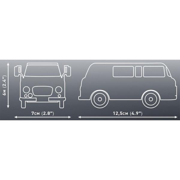 Postavte si model Barkas B1000 dodávka a minibus vyráběný v NDR v letech 1961 až 1991. Jediný vůz této třídy vyráběný ve východním Německu a hlavně tam používaný. Model byl věrně reprodukován v měřítku 1:35. Balení obsahuje 147 kostek. Rozměr : 12,5×6 cm Věk : 5+