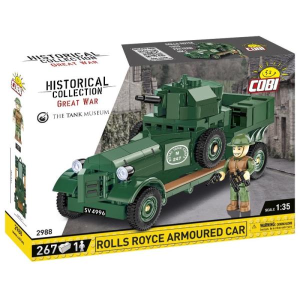 Postavte si model obrněného vozu Rolls Royce byl vyroben v roce 1920. Kopie Tankového muzea fungovala v Irsku, Šanghaji a Egyptě, než se vrátila do Anglie, aby hlídkovala na pobřeží Norfolku během druhé světové války. Do muzejní sbírky byl přidán v roce 1947 a stal se mimořádně významným exponátem. Balení obsahuje 267 kostek.