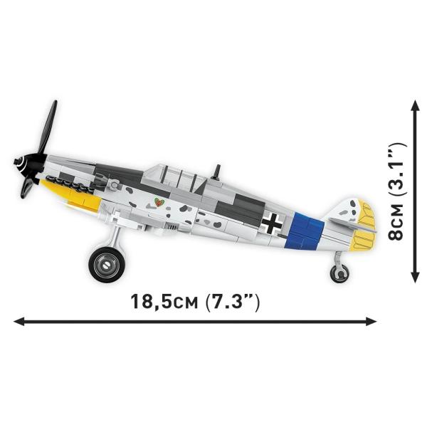 Pohyblivé prvky a jedinečná kamufláž:Cítíte se jako skutečný designér letadel! Model Bf 109 G je vybaven pohyblivými prvky jako otočná vrtule a pohyblivé křidélka, což letadlu dodává interaktivní charakter. Model je navíc pokryt originální kamufláží používanou Luftwaffe. Díky tomu model vypadá jako skutečný válečný bojový stroj, který si zachovává svou jedinečnou estetiku i po dlouhodobém hraní.