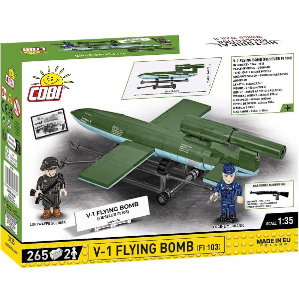 Postavte si detailní model legendární německé rakety V-1, známé také jako „létající bomba“, která byla jednou z nejvýznamnějších inovací druhé světové války. Tento model v měřítku 1:35 od COBI nabízí realistické zpracování a je ideální pro sběratele a nadšence vojenské historie.