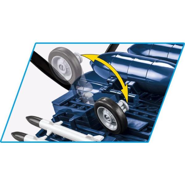 Vought F4U-4 Corsair byl stíhací letoun amerického námořnictva. V letech 1942-1952 jej vyráběla společnost Vought-Sikorsky Aircraft. Populární „Corsair“ vstoupil do služby v roce 1942. Proces návrhu však sahá až do roku 1938. Charakteristický tvar sklopných křídel a dozadu posunutá pilotní kabina byla výsledkem četných úprav během fáze návrhu a testování prototypů. . Vrcholem designérských prací byla konstrukce s výjimečným výkonem, mnohými považována za nejlepší stíhačku 2. světové války. Corsairs používaly americké jednotky během korejské války. V počátečním období probíhaly psí zápasy mezi F4U a stíhačkami Jak-9, ale s příchodem MiG-15 byly Corsairy v Koreji staženy do role podpůrných letadel a nočních stíhaček. Letadlo bylo vyzbrojeno šesti 12,7 mm kulomety Browning, dvěma 450 kg bombami nebo osmi 127 mm neřízenými střelami HVAR. První afroamerický pilot amerického námořnictva (jehož život inspiroval filmový scénář) seděl za řízením právě takového stroje. Stavebnice Vought F4U-4 Corsair byla vydána v licenci koncernu Northrop-Grumman a obsahuje 520 vysoce kvalitních komponentů. Historická figurka pilota byla obohacena o přídavnou hlavu, kterou lze namontovat zaměnitelně. Model bojového letadla od COBI byl vytvořen s důrazem na nejmenší detaily v měřítku 1:32. Je pokryta kvalitními potisky, které se neopotřebovávají ani při intenzivním používání. Kabina se otevře a dá se do ní umístit figurka. Mezi další pohyblivé části patří křidélka, vrtule a skládací kola. Vytištěné značky odkazují na hrdinského pilota z korejské války. Celý set je doplněn o zobrazovací štítek s vytištěným názvem modelu letadla. Corsair od COBI také dokonale doplňuje ostatní letadla z druhé světové války a korejská válečná letadla v měřítku 1:32. Je to jeden z nejkrásnějších blokových modelů, jaké byly kdy vyrobeny a vždy přitahuje pozornost díky mimořádně charakteristickému vzhledu sklopných a složených křídel. Charakteristika: 520 vysoce kvalitních bloků Vyrobeno v EU společností s více než 20 letou tradicí Kostky splňují bezpečnostní normy výrobků pro děti Plně kompatibilní s jinými značkami stavebních bloků Bloky s potiskem se nepoškrábou ani nerozmazávají a nevyblednou během hry ani vlivem teploty Jasné a intuitivní pokyny na základě ilustrací a podrobných pokynů 100% výtisky, žádné nálepky Speciální stojan na displej Jmenovka 1 figurka pilota se dvěma různými hlavami Měřítko 1:32 Rozměry modelu (D x Š x V): 308 mm (12,6″) x 385 mm (15,15″) x 145 mm (5,71″) Pro děti od 8 let