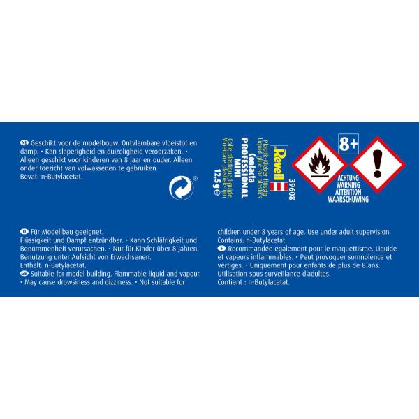 Kvalitní lepidlo pro plastové modely Kvalitní doplňky se vždycky vyplatí, protože perfektní model přinese modeláře ten nejlepší pocit úspěchu! Všechny nástroje firmy Revell a pomůcky navíc jsou proto vymezenými pro Příslušné sady modelů. Lepidla řady Contacta Professional od firmy Revell jsou určená pro přesné lepení bodů a spojů. Vhodné na přesné lepení sestavování modelů. Balení s Jehlový aplikátorem. Velice jemná dutá jehla Slouží k perfektního lepení jemných detailů a hran dílů. Návod na použití: Lepidlo naneseme v tenké vrstvě na jednu stranu lepeného spoje, vyčkáme cca 5-10 sec., Aby došlo k lehké zavadnutí, a pak díly spoje, případně zafixujeme. Lepené spoje jsou samonosné po cca 15-20 min dle velikosti plochy spoje. Plné pevnosti dosahuje spoj po cca 60 min. Varování! Obsahuje: n-butylacetát. Hořlavá kapalina a páry. Může zpusobu ospalost nebe zavřít. Je-li nutná lékařská pomoc, mějte po ruce obal nebo štítek výrobku. Uchovávejte mimo dosah dětí. Před použitím si přečtěte údaje na štítku. Chraňte před teplem / Jiskra / OTEVŘENO plamenem / hořkými povrchy. Zákaz kouření. Tento výrobek není hračka!
