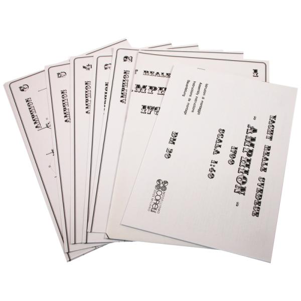 Set obsahuje kompletní sadu výkresové dokumentace modelu v měřítku 1:1 s postupem stavby, na výkrese jsou pečlivě označeny díly a je zde i seznam jednotlivých součástí modelu.